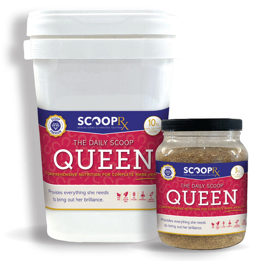 ScoopRX has combined practical equestrian experience with scientific based research to design effective products aimed to eliminate the need for more and more scoops! Made with no synthetics, fillers or sugars, our supplements deliver amazing results naturally. Choose from our three extra strength formulas – Athlete, Master & Queen – designed with higher concentrations and multi-faceted support for your horse. Feed daily to support horses throughout all stages of their life and career!