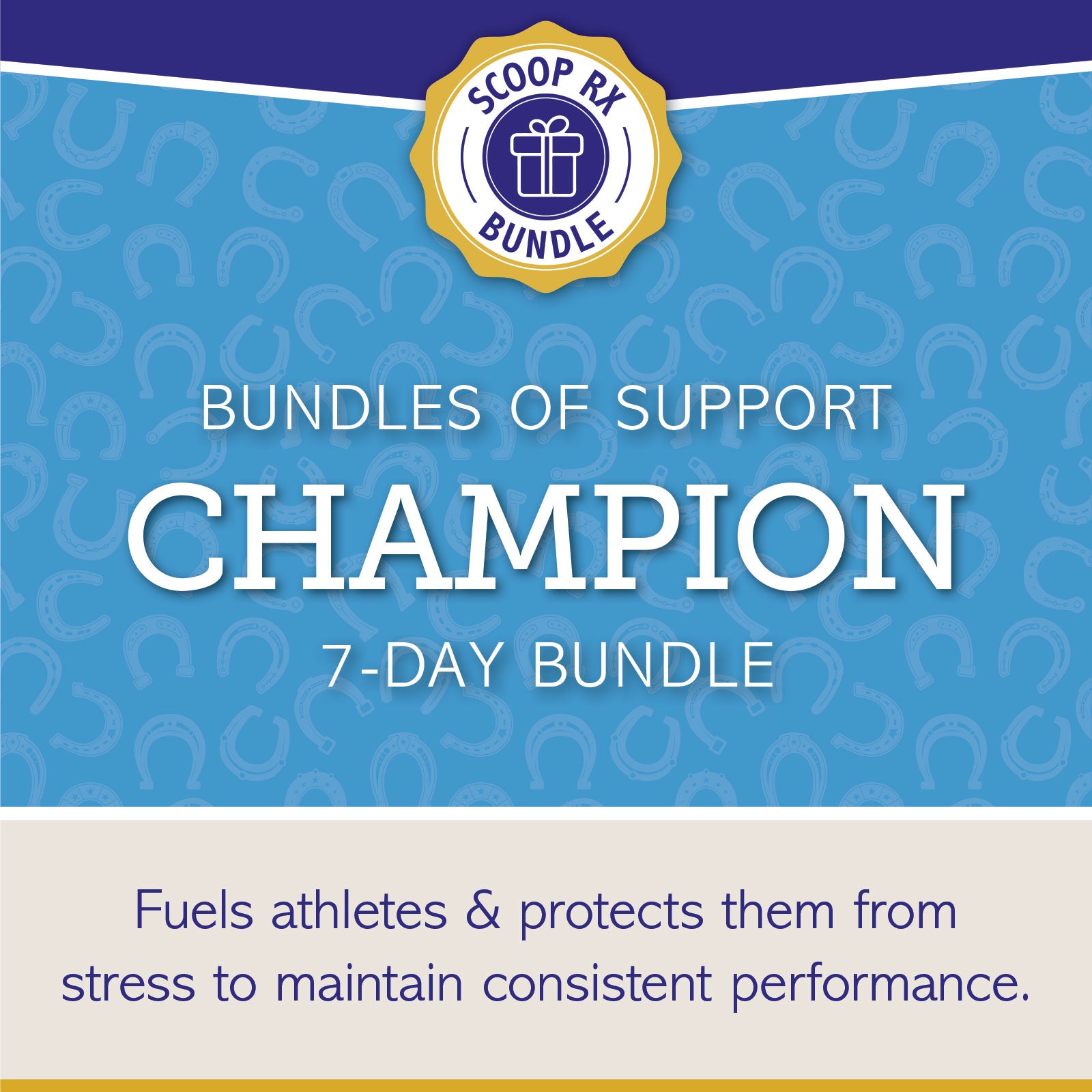 You know that top-shelf products are essential to safeguard your horses' well-being during times of stress and maintain their peak condition. When it comes to comprehensive protection, nothing compares to our products designed to enhance your horses’ resilience and support their overall health. Introducing CHAMPION 7-DAY BUNDLES – convenient travel-ready bundles that are designed to fuel athletes & protect them from stress to maintain consistent performance.