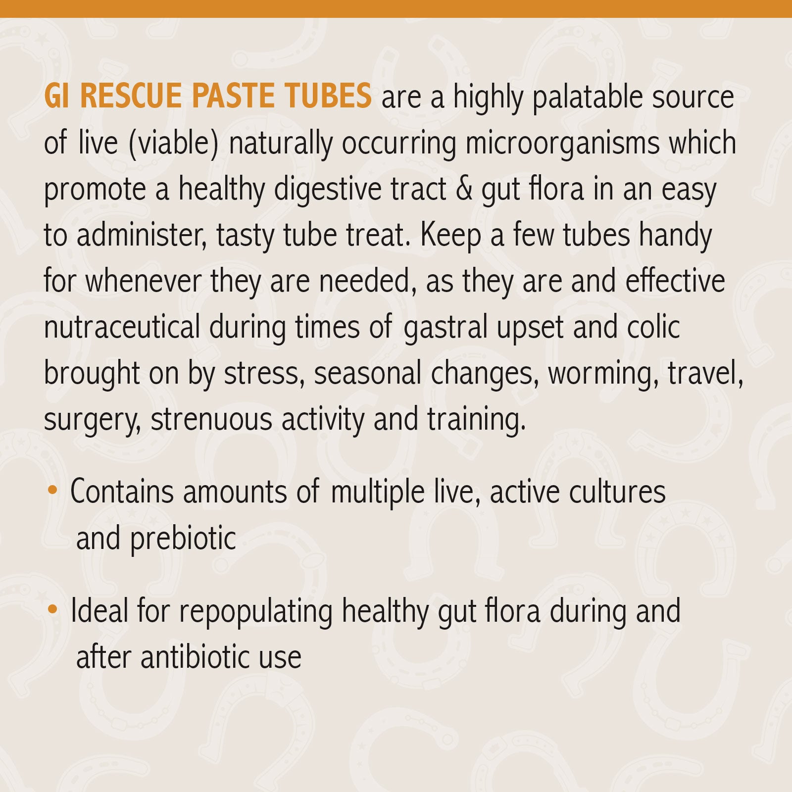 For best results, start 2-3 days prior to “event” and continue 2-3 days after. Must be fed separately from any proton-pump inhibitor (Omeprazole). Try a GI Rescue Paste Tube before your ride and notice a better performance.