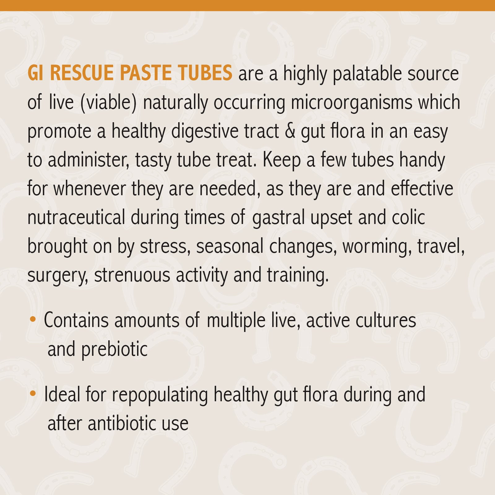 For best results, start 2-3 days prior to “stress” and continue 2-3 days after. Try a GI Rescue Paste Tube before your ride and notice a better performance.