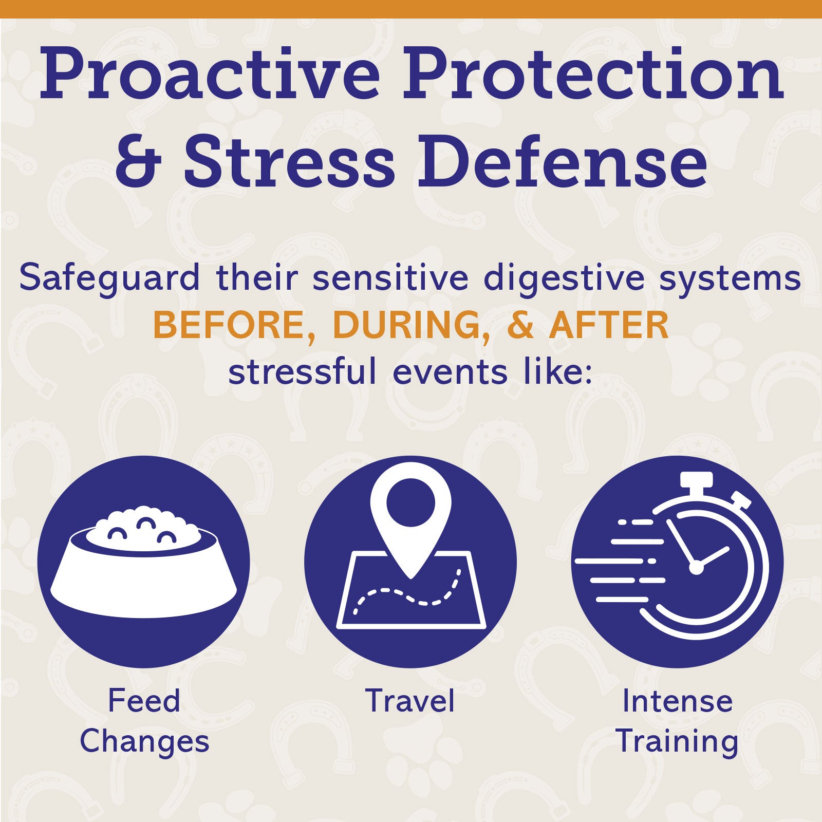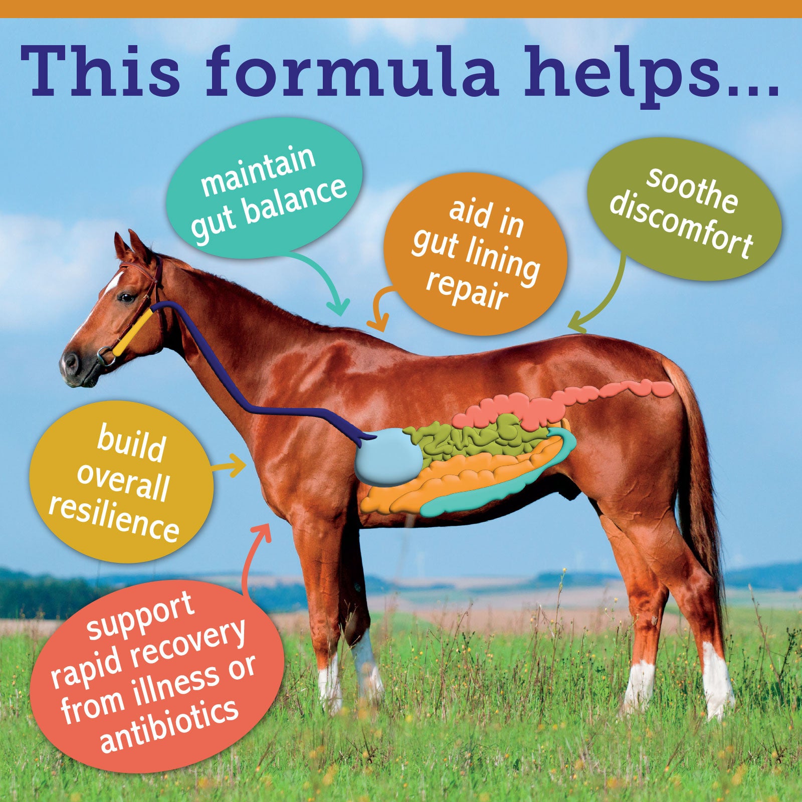 Ideal for safeguarding sensitive digestive systems before, during, and after stressful events like travel, intense training, or feed changes. This formula helps maintain gut balance, build overall resilience, soothe discomfort, and aid in gut lining repair while supporting rapid recovery from illness or antibiotics